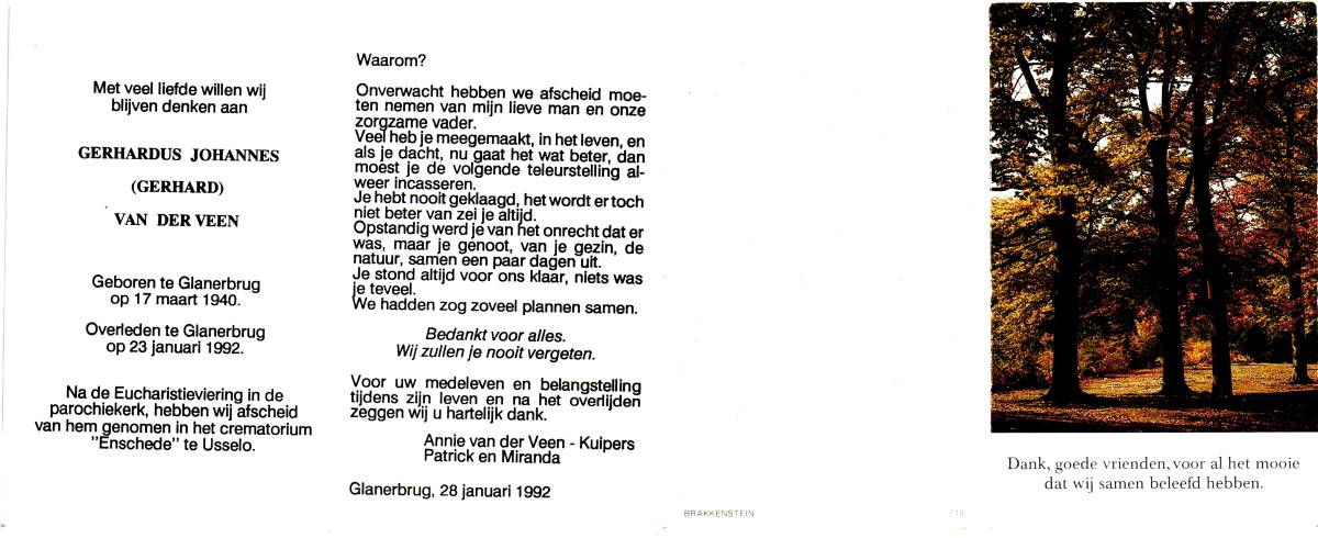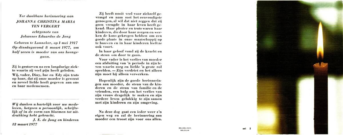 VERGERT, ten, Johan, geboren op 21-2-1921 te Lonneker, overleden op 8-10-1996 te Enschede, ziekenhuis op 75-jarige leeftijd, begraven op 11-10-1996 te Lonneker.