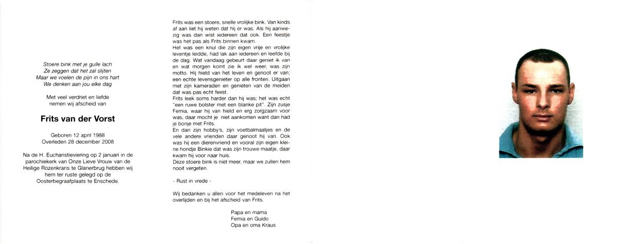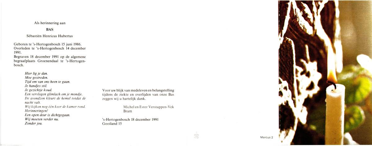 VEHOF, Paul, geboren op 20-2-1969 te St. Isidorushoeve, overleden op 15-11-1986 op 17-jarige leeftijd, begraven op 19-11-1986 te St. Isidorushoeve.