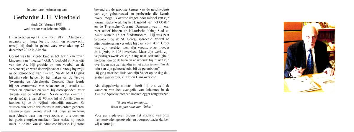 VERGERT, ten, Johan, geboren op 25-9-1925 te Lonneker, overleden op 20-4-2008 te Enschede op 82-jarige leeftijd.