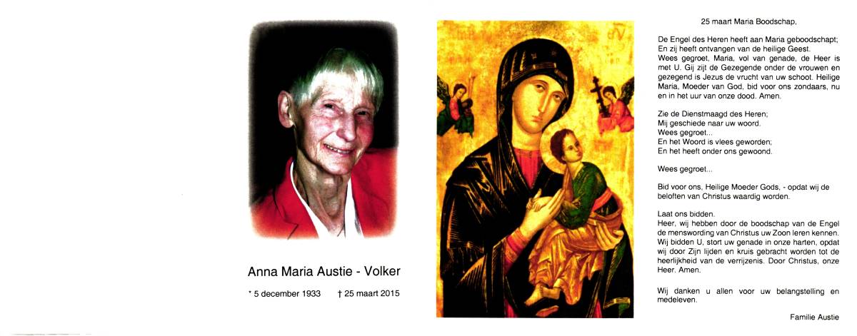 VOLKER, Anna Maria, geboren op 5-12-1933, overleden op 25-3-2015 op 81-jarige leeftijd.
